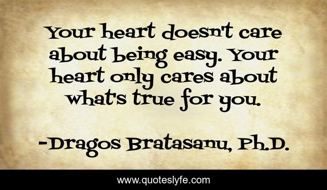 This page presents the quote "Your heart doesn't care about being easy. Your heart only cares about what's true for you.". Author of this quote is Dragos Bratasanu, Ph.D.. This quote is about easy-way, heart, life, truth, wisdom,.