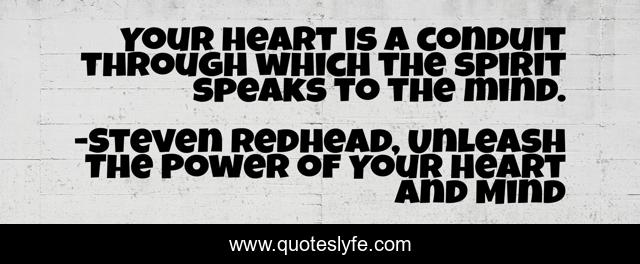 This page presents the quote "Your heart is a conduit through which the spirit speaks to the mind.". Author of this quote is Steven Redhead, Unleash The Power of Your Heart and Mind. This quote is about heart, mind, spirit,.