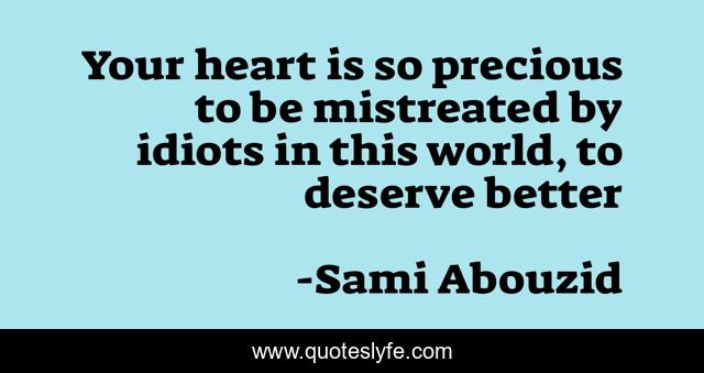 This page presents the quote "Your heart is so precious to be mistreated by idiots in this world, to deserve better". Author of this quote is Sami Abouzid. This quote is about love, affection,.