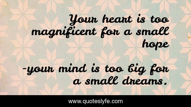 "your mind is too big for a small dreams. Quotes." Quoteslyfe.com, 2025. Fri. 05 Dec. 2025. <https://www.quoteslyfe.com/quote/Your-heart-is-too-magnificent-for-a-54191>.