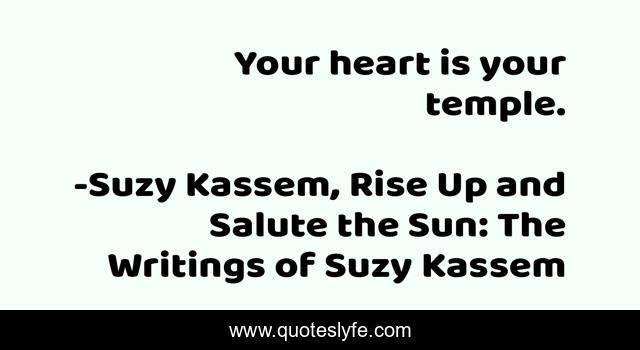 This page presents the quote "Your heart is your temple.". Author of this quote is Suzy Kassem, Rise Up and Salute the Sun: The Writings of Suzy Kassem. This quote is about conscience, faith, heart, metaphysics, god, church, religious, wisdom, spirituality,.