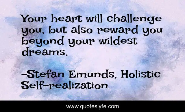 This page presents the quote "Your heart will challenge you, but also reward you beyond your wildest dreams.". Author of this quote is Stefan Emunds, Holistic Self-realization. This quote is about holistic, life-lesson, positive-life, self-realization, positive-psychology, inspirational, self-help, enthusiasm, inspiration,.