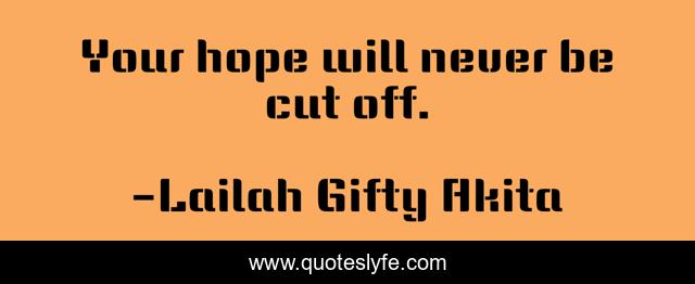 "Lailah Gifty Akita Quotes." Quoteslyfe.com, 2025. Sat. 06 Dec. 2025. <https://www.quoteslyfe.com/quote/Your-hope-will-never-be-cut-off-185627>.