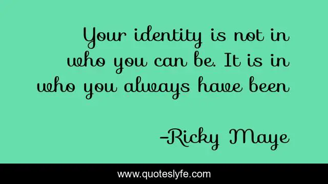 "Ricky Maye Quotes." Quoteslyfe.com, 2025. Fri. 05 Dec. 2025. <https://www.quoteslyfe.com/quote/Your-identity-is-not-in-who-you-106181>.