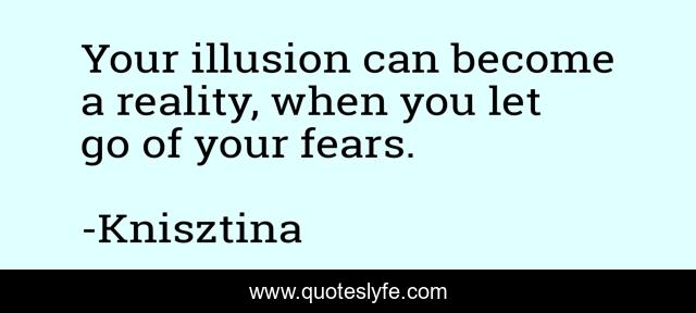 This page presents the quote "Your illusion can become a reality, when you let go of your fears.". Author of this quote is Knisztina. .