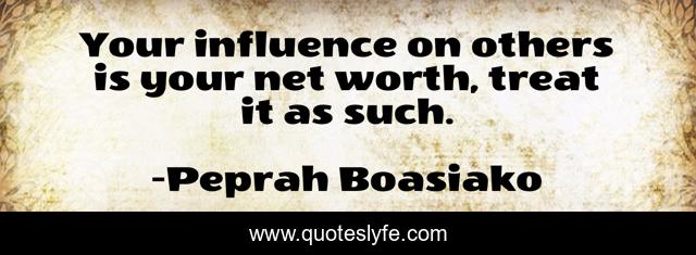 This page presents the quote "Your influence on others is your net worth, treat it as such.". Author of this quote is Peprah Boasiako. This quote is about life, leadership, influence,.