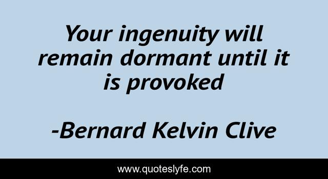 This page presents the quote "Your ingenuity will remain dormant until it is provoked". Author of this quote is Bernard Kelvin Clive. This quote is about attitude-inspiration, creativity, imagination,.