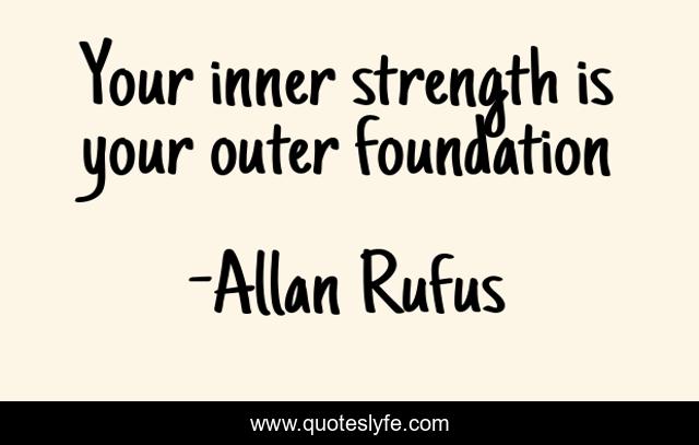 "Allan Rufus Quotes." Quoteslyfe.com, 2025. Fri. 05 Dec. 2025. <https://www.quoteslyfe.com/quote/Your-inner-strength-is-your-outer-foundation-1618>.