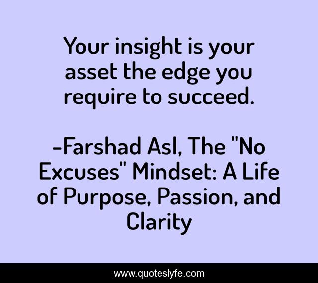 "Farshad Asl, The "No Excuses" Mindset: A Life of Purpose, Passion, and Clarity Quotes." Quoteslyfe.com, 2025. Sat. 06 Dec. 2025. <https://www.quoteslyfe.com/quote/Your-insight-is-your-asset-the-edge-33179>.
