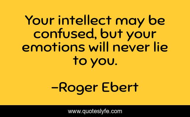 This page presents the quote "Your intellect may be confused, but your emotions will never lie to you.". Author of this quote is Roger Ebert. This quote is about lie, confused,.
