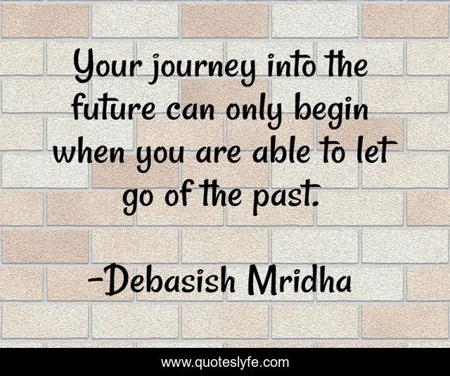 This page presents the quote "Your journey into the future can only begin when you are able to let go of the past.". Author of this quote is Debasish Mridha. This quote is about let-go-of-the-past, philosophy, debasish-mridha, quotes, journey, inspirational, enthusiasm, future, debasish-mridha-m-d,.