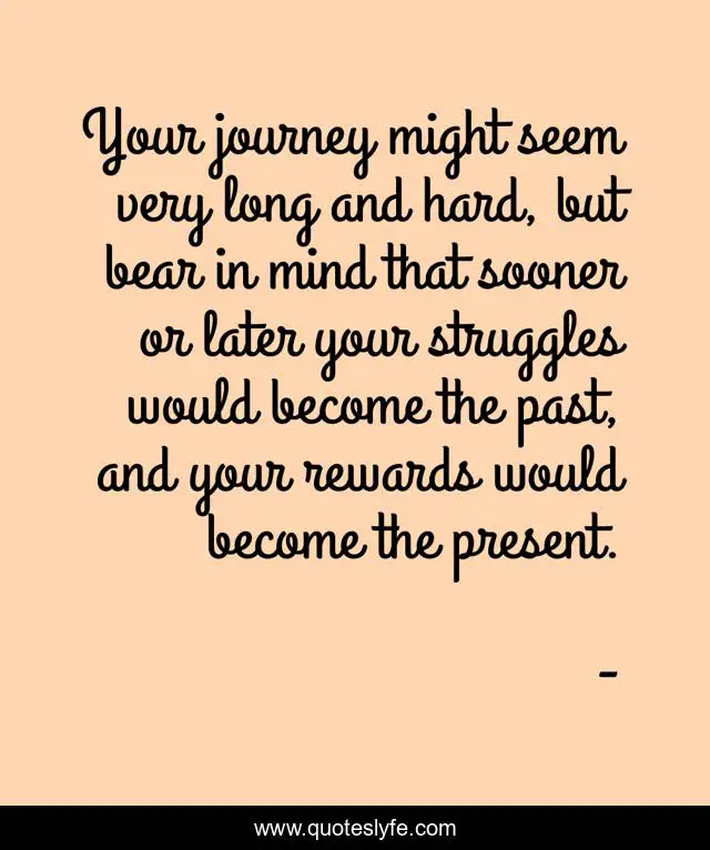 Your journey might seem very long and hard, but bear in mind that sooner or later your struggles would become the past, and your rewards would become the present.