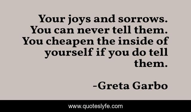 This page presents the quote "Your joys and sorrows. You can never tell them. You cheapen the inside of yourself if you do tell them.". Author of this quote is Greta Garbo. .