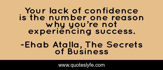 This page presents the quote "Your lack of confidence is the number one reason why you’re not experiencing success.". Author of this quote is Ehab Atalla, The Secrets of Business. This quote is about entrepreneur, business, entrepreneurship,.