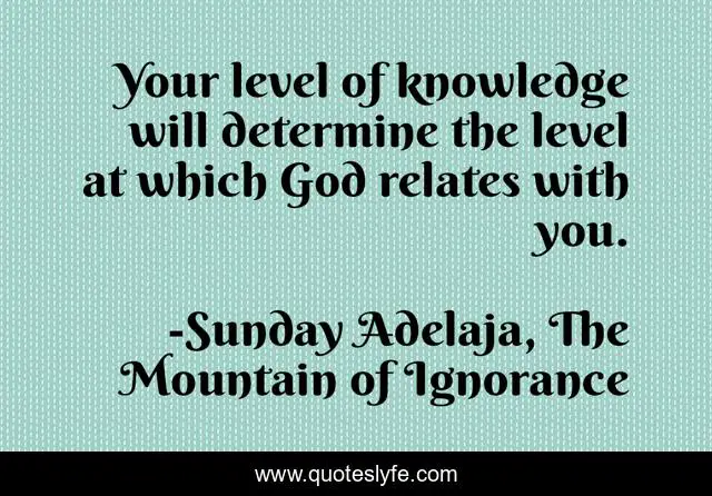 This page presents the quote "Your level of knowledge will determine the level at which God relates with you.". Author of this quote is Sunday Adelaja, The Mountain of Ignorance. This quote is about mountain, life, darkness, power, danger, god, people, ignorance, relationship,.