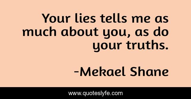 This page presents the quote "Your lies tells me as much about you, as do your truths.". Author of this quote is Mekael Shane. This quote is about character, integrity, honesty,.