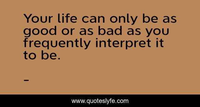 This page presents the quote "Your life can only be as good or as bad as you frequently interpret it to be.". Author of this quote is . This quote is about edmond-mbiaka, bad, good, the-quality-of-your-life,.