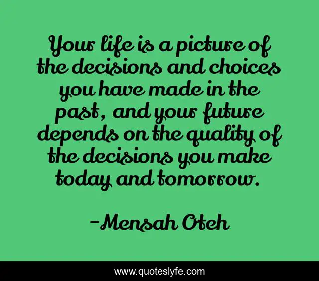 Your life is a picture of the decisions and choices you have made in the past, and your future depends on the quality of the decisions you make today and tomorrow.
