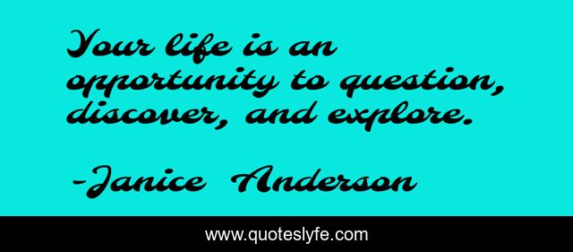 This page presents the quote "Your life is an opportunity to question, discover, and explore.". Author of this quote is Janice Anderson. This quote is about gratitude, secular-enlightenment, life, enlightenment, lifestyle, freedom, peace, question, discover,.