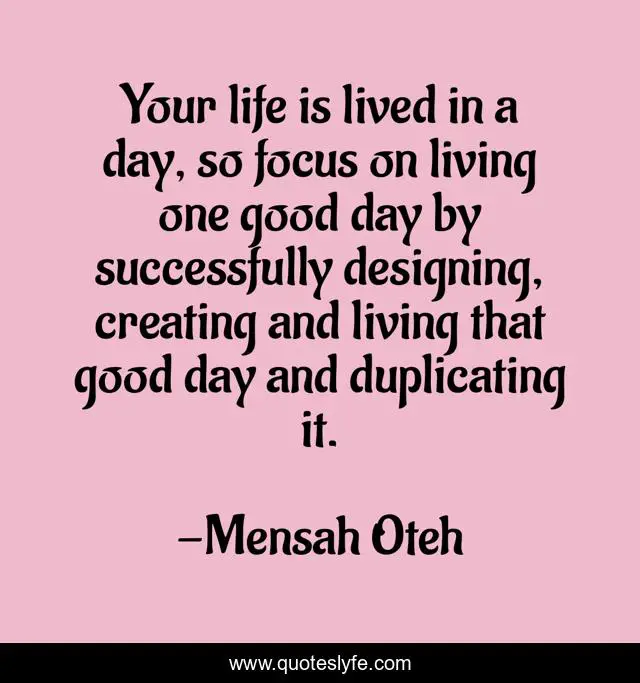 "Mensah Oteh Quotes." Quoteslyfe.com, 2025. Sat. 06 Dec. 2025. <https://www.quoteslyfe.com/quote/Your-life-is-lived-in-a-day-49232>.