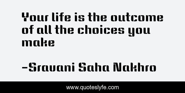 This page presents the quote "Your life is the outcome of all the choices you make". Author of this quote is Sravani Saha Nakhro. .