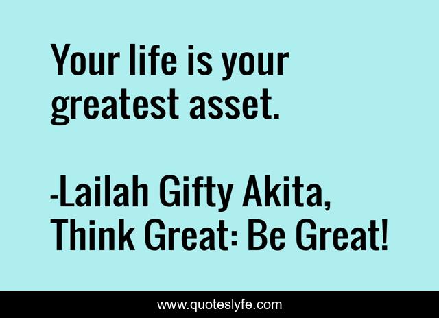 "Lailah Gifty Akita, Think Great: Be Great! Quotes." Quoteslyfe.com, 2025. Tue. 09 Dec. 2025. <https://www.quoteslyfe.com/quote/Your-life-is-your-greatest-asset-95051>.