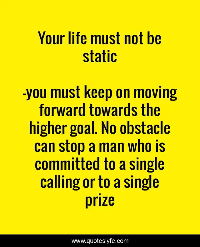 "you must keep on moving forward towards the higher goal. No obstacle can stop a man who is committed to a single calling or to a single prize Quotes." Quoteslyfe.com, 2025. Sat. 06 Dec. 2025. <https://www.quoteslyfe.com/quote/Your-life-must-not-be-static-248264>.