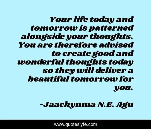 "Jaachynma N.E. Agu Quotes." Quoteslyfe.com, 2025. Sun. 07 Dec. 2025. <https://www.quoteslyfe.com/quote/Your-life-today-and-tomorrow-is-patterned-88899>.
