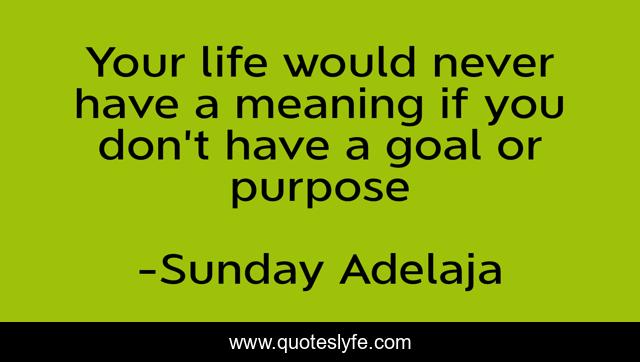 This page presents the quote "Your life would never have a meaning if you don’t have a goal or purpose". Author of this quote is Sunday Adelaja. This quote is about life, blessing, jobless, money, work, meaningless-life, finance, job, joblessness,.