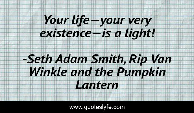 This page presents the quote "Your life—your very existence—is a light!". Author of this quote is Seth Adam Smith, Rip Van Winkle and the Pumpkin Lantern. This quote is about life-is-light, power-of-light, light, light-and-darkness, light-is-life,.