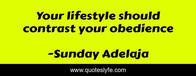 This page presents the quote "Your lifestyle should contrast your obedience". Author of this quote is Sunday Adelaja. This quote is about lifestyle, obedience, contrast,.