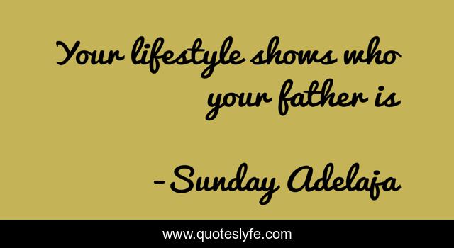 This page presents the quote "Your lifestyle shows who your father is". Author of this quote is Sunday Adelaja. This quote is about father, lifestyle, truth, show,.