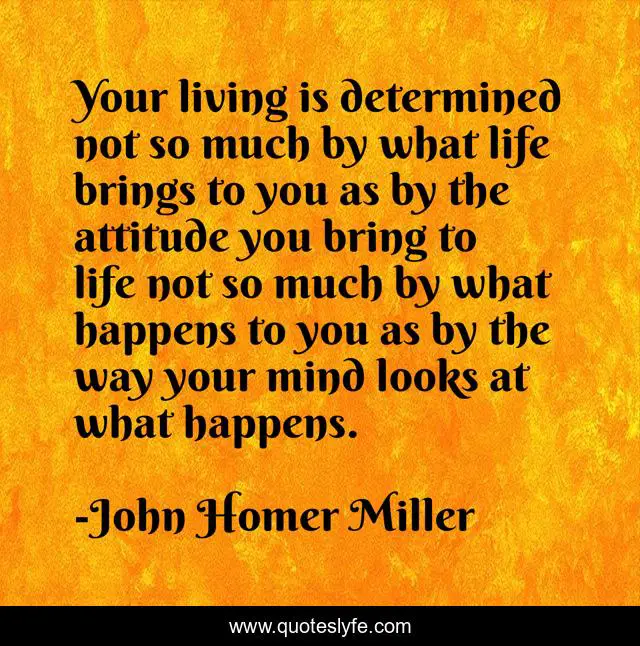 This page presents the quote "Your living is determined not so much by what life brings to you as by the attitude you bring to life not so much by what happens to you as by the way your mind looks at what happens.". Author of this quote is John Homer Miller. .