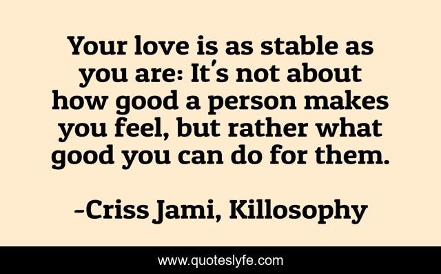 "Criss Jami, Killosophy Quotes." Quoteslyfe.com, 2025. Tue. 09 Dec. 2025. <https://www.quoteslyfe.com/quote/Your-love-is-as-stable-as-you-92068>.