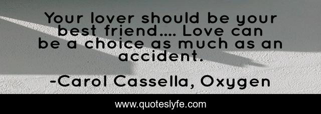 This page presents the quote "Your lover should be your best friend.... Love can be a choice as much as an accident.". Author of this quote is Carol Cassella, Oxygen. This quote is about falling-in-love, love, affection,.