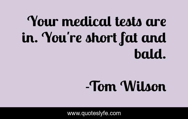 This page presents the quote "Your medical tests are in. You're short fat and bald.". Author of this quote is Tom Wilson. .