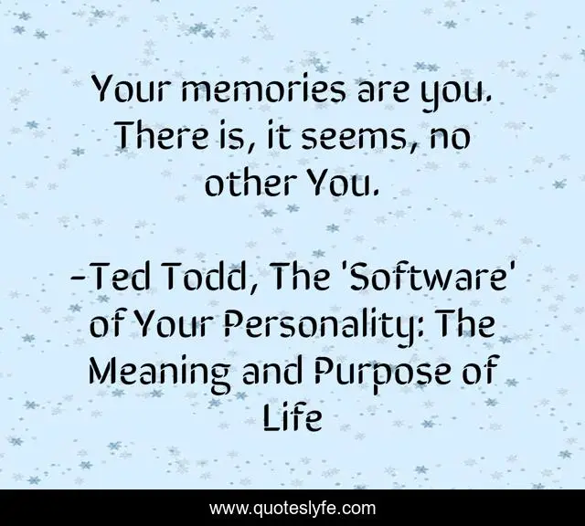 "Ted Todd, The 'Software' of Your Personality: The Meaning and Purpose of Life Quotes." Quoteslyfe.com, 2025. Fri. 05 Dec. 2025. <https://www.quoteslyfe.com/quote/Your-memories-are-you-There-is-it-42432>.