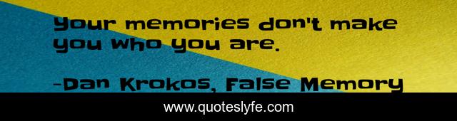 This page presents the quote "Your memories don't make you who you are.". Author of this quote is Dan Krokos, False Memory. This quote is about memories, false-memory,.