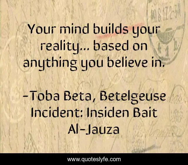 "Toba Beta, Betelgeuse Incident: Insiden Bait Al-Jauza Quotes." Quoteslyfe.com, 2025. Sun. 07 Dec. 2025. <https://www.quoteslyfe.com/quote/Your-mind-builds-your-reality-based-on-93472>.
