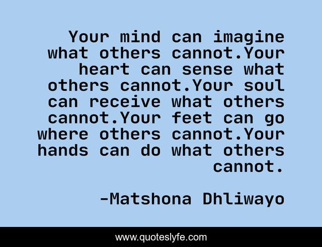 "Matshona Dhliwayo Quotes." Quoteslyfe.com, 2025. Sat. 06 Dec. 2025. <https://www.quoteslyfe.com/quote/Your-mind-can-imagine-what-others-cannot-109117>.