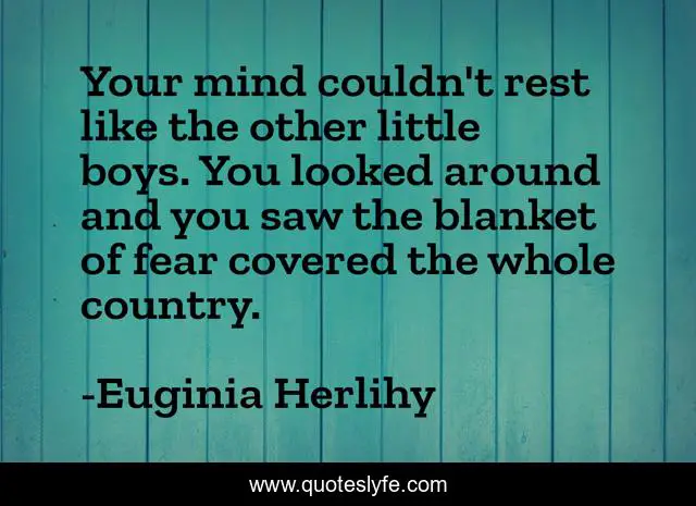 This page presents the quote "Your mind couldn't rest like the other little boys. You looked around and you saw the blanket of fear covered the whole country.". Author of this quote is Euginia Herlihy. .