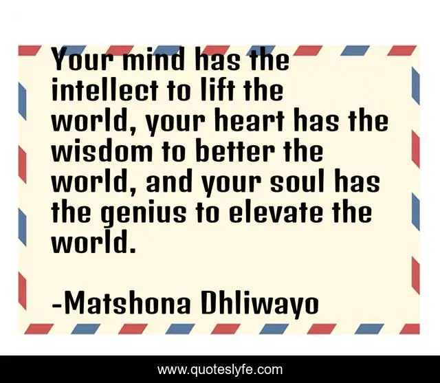 Your mind has the intellect to lift the world, your heart has the wisdom to better the world, and your soul has the genius to elevate the world.