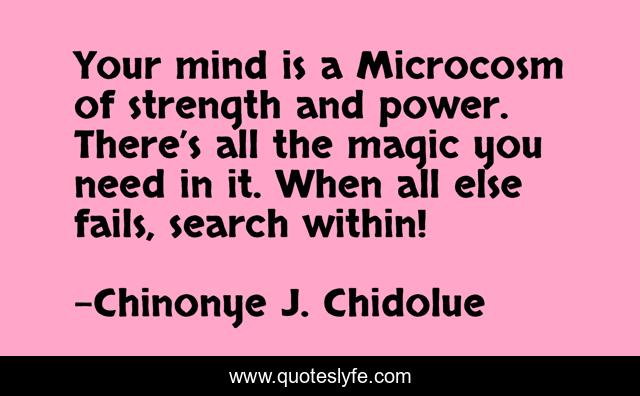 "Chinonye J. Chidolue Quotes." Quoteslyfe.com, 2025. Sun. 07 Dec. 2025. <https://www.quoteslyfe.com/quote/Your-mind-is-a-Microcosm-of-strength-245721>.