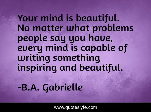 This page presents the quote "Your mind is beautiful. No matter what problems people say you have, every mind is capable of writing something inspiring and beautiful.". Author of this quote is B.A. Gabrielle. .