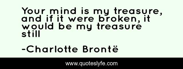 This page presents the quote "Your mind is my treasure, and if it were broken, it would be my treasure still". Author of this quote is Charlotte Brontë. This quote is about love, mental-illness, affection,.