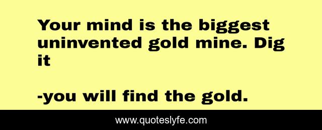 This page presents the quote "Your mind is the biggest uninvented gold mine. Dig it". Author of this quote is you will find the gold.. .