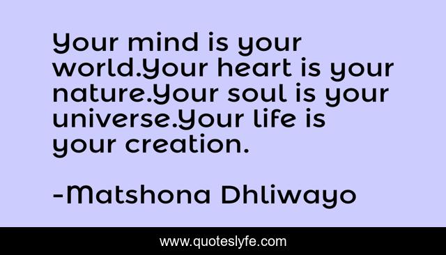 "Matshona Dhliwayo Quotes." Quoteslyfe.com, 2025. Sun. 07 Dec. 2025. <https://www.quoteslyfe.com/quote/Your-mind-is-your-world-Your-heart-198850>.