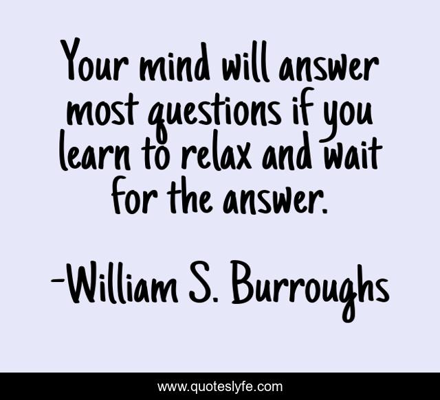This page presents the quote "Your mind will answer most questions if you learn to relax and wait for the answer.". Author of this quote is William S. Burroughs. This quote is about mind, questions, relax,.