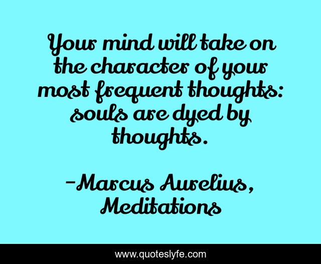 This page presents the quote "Your mind will take on the character of your most frequent thoughts: souls are dyed by thoughts.". Author of this quote is Marcus Aurelius, Meditations. This quote is about mind, soul, thoughts,.