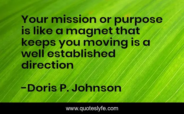This page presents the quote "Your mission or purpose is like a magnet that keeps you moving is a well established direction". Author of this quote is Doris P. Johnson. This quote is about business-success, simplicity, business-advice, knowledge, business, business-start-up, create, creativity, business-management-training,.